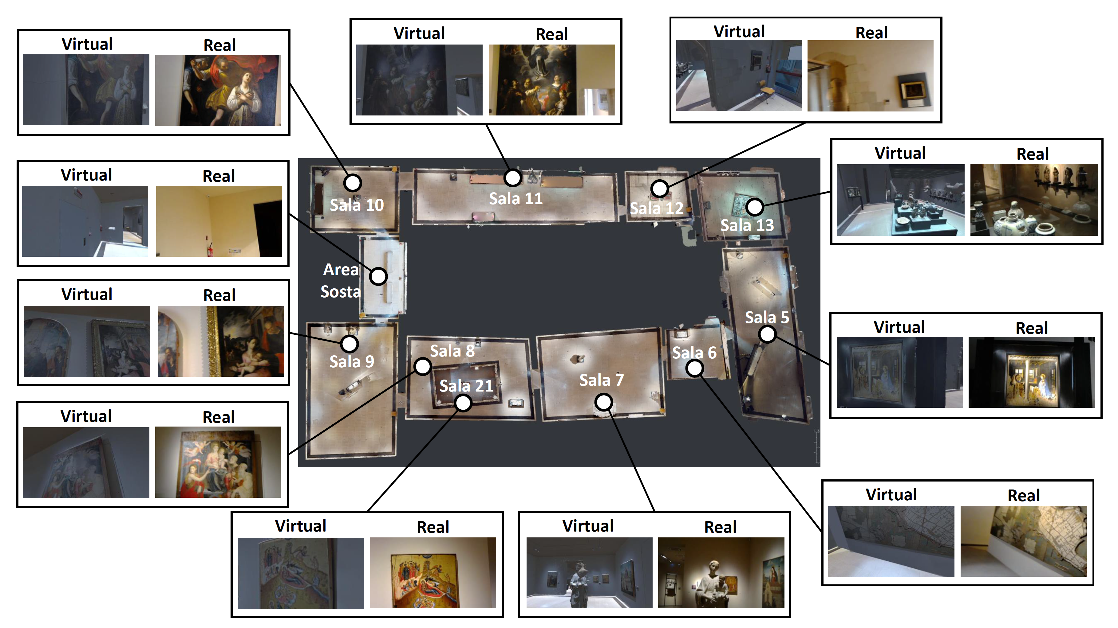 The dataset has been generated using the "Galleria Regionale Palazzo Bellomo" 3D model scanned with Matterport, and includes