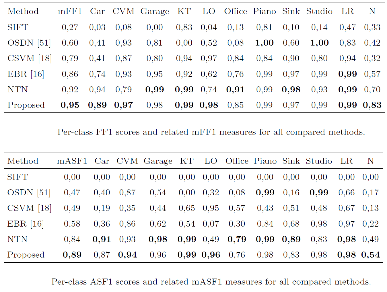 The test set consists in 10 video sequences covering the considered personal locations of interest, negative frames and transitions among locations. Each frame in the test sequences has been manually labeled as either one of the 10 locations of interest or as a negative.