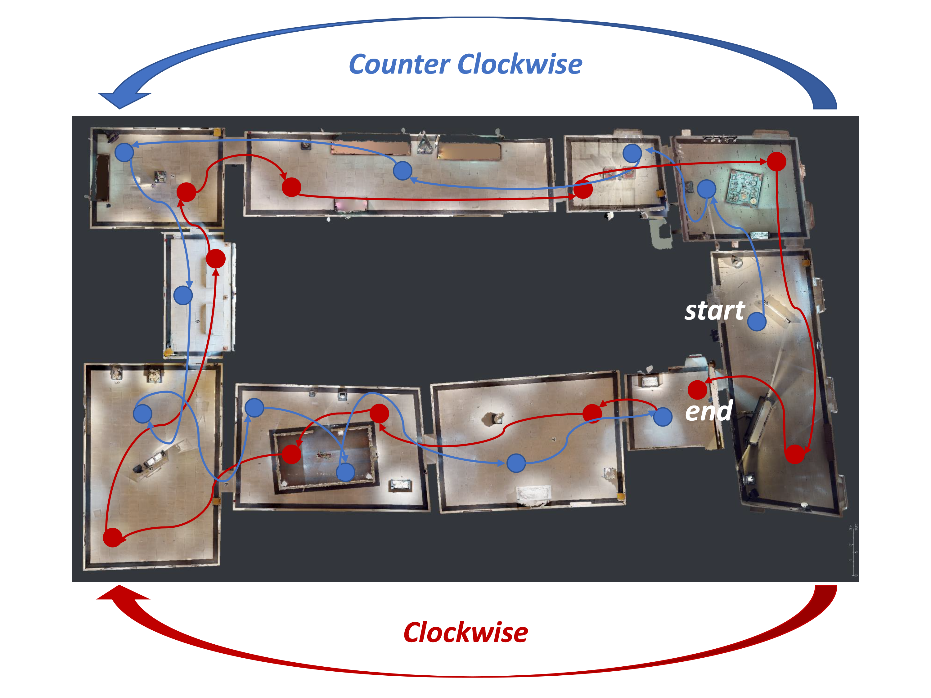 The dataset has been generated using the "Area 3" 3D model from the S3DIS Dataset. By using this model, we simulated egocentric navigations of 90 paths, 30 paths for each height of the virtual agents that performed the navigations [150cm, 160cm, 170cm].