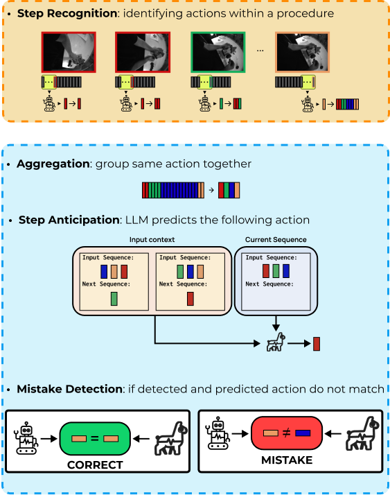 Alessandro Flaborea, Guido D'Amely, Leonardo Plini, Luca Scofano, Edoardo De Matteis, Antonino Furnari, Giovanni Maria Farinella, Fabio Galasso (2024). PREGO: online mistake detection in PRocedural EGOcentric videos. In Conference on Computer Vision and Pattern Recognition (CVPR).